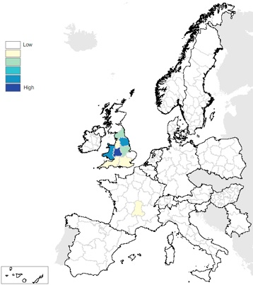 Current Turfords in the UK and in the middle of France (marked in yellow)